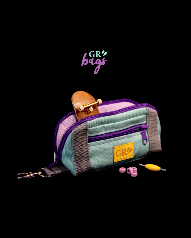 Original handmade GR bags 2.0 made by my amazing auntie Martina. She designed and sewed them from scratch, I picked color combinations and helped a little with the design, so they are made especially for fingerboarders needs.